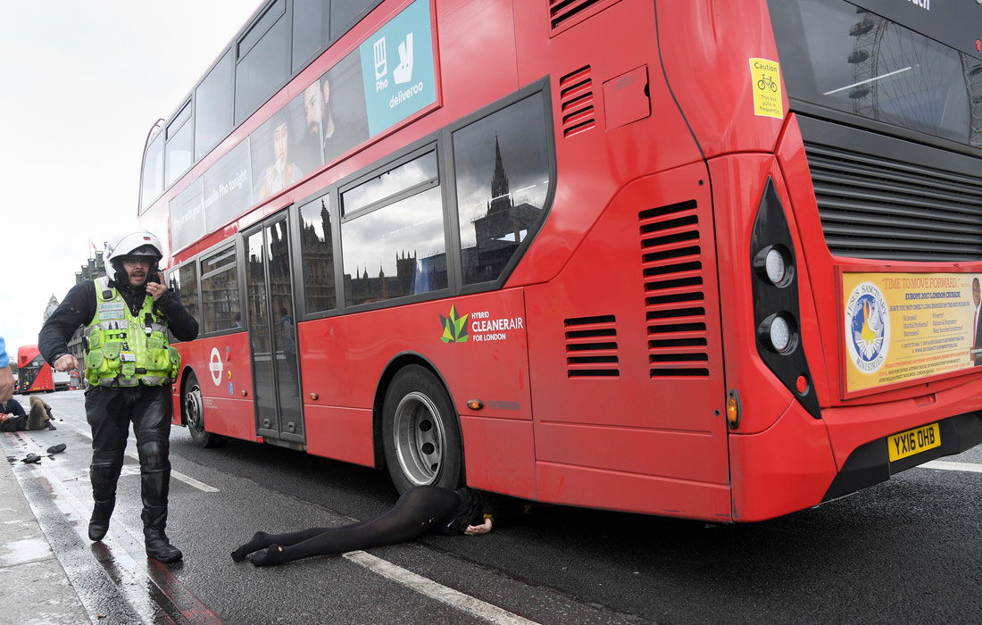 Какой то псих с двумя ножами поехал не по проезжей части моста, а по тротуару. Прохожие, как могли, уворачивались, одна женщина прыгнула в Темзу, её потом вынули. Ранено, с той или иной степенью 10 и погибло 2.